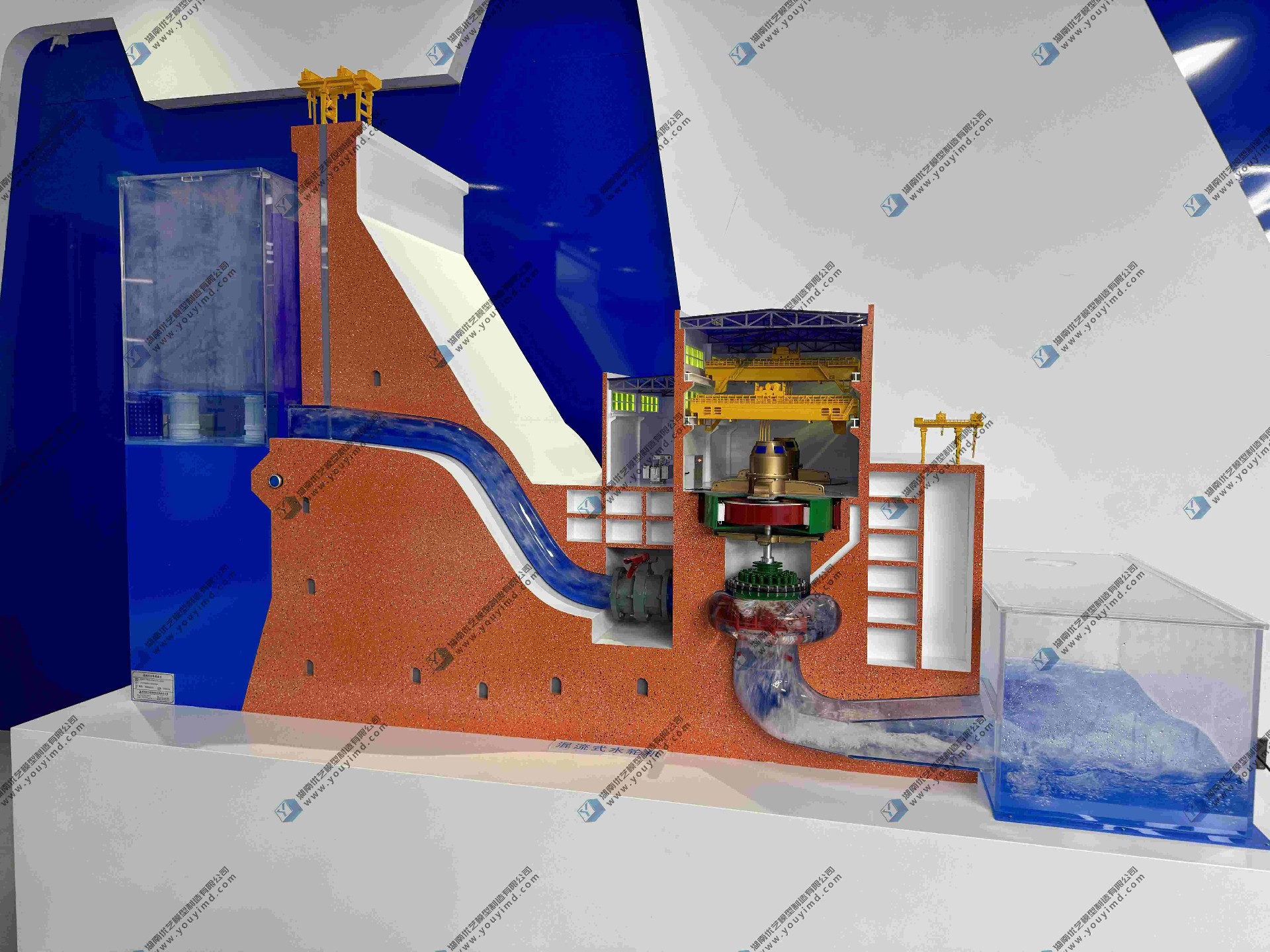 湖南省優藝模型制造有限責任公司,為您匠心打造混流式水輪機真實過水動態仿真模型。這是一款集結構精準還原、動態功能演示、多場景適配于一體的高端定制化模型,